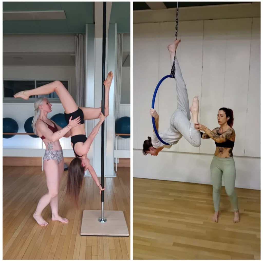 Beaucoup de figures de pole dance sont réalisables à l’endroit comme à l’envers, d’un côté comme de l’autre… Vous aussi, venez jouer avec vos sens et avec les symétries ![]()